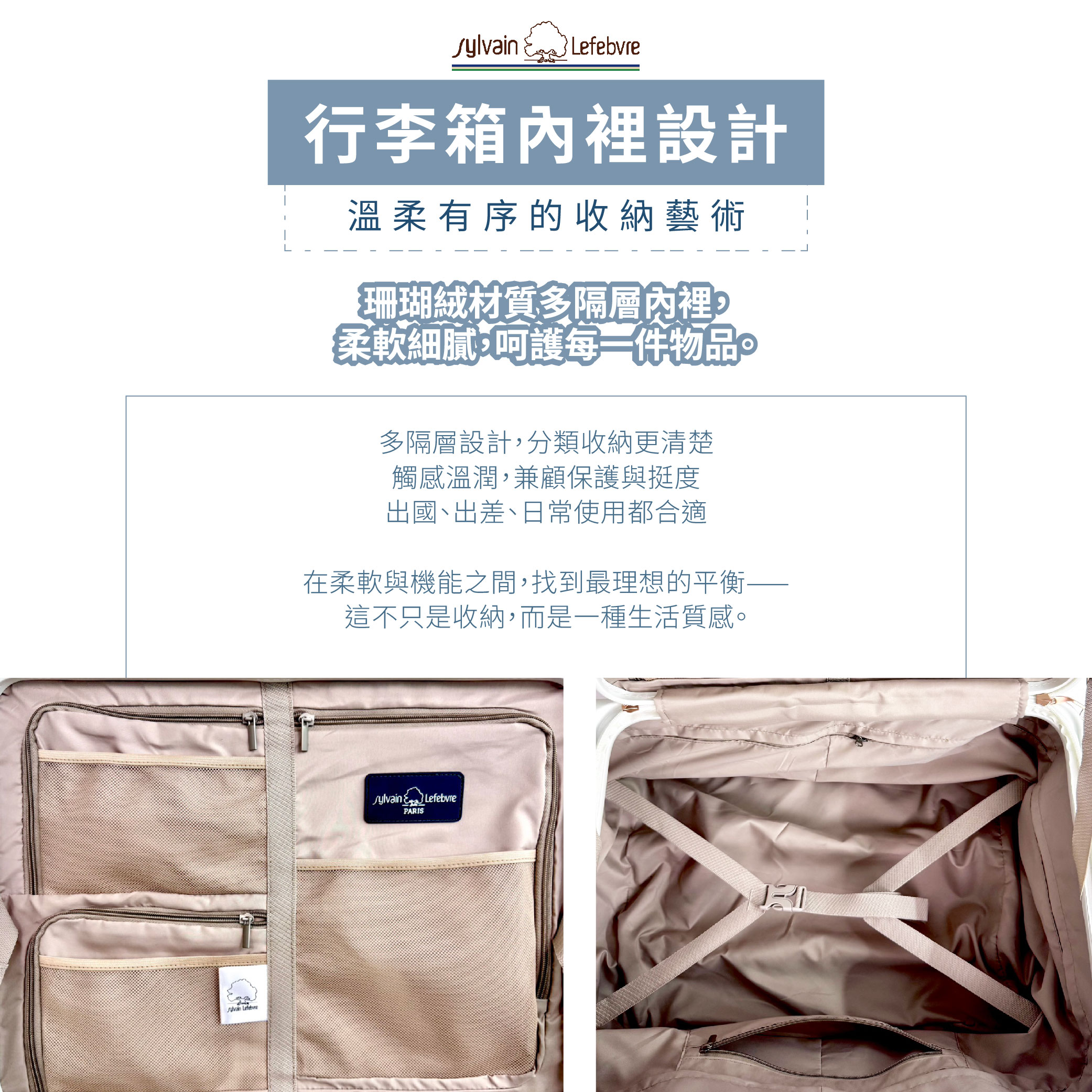 內裡:柔軟細緻尼龍布抗汙耐磨,雙面採用活動式多功能收納隔板,與X型可調式插扣固定帶,固定行李不移位取物更方便!!